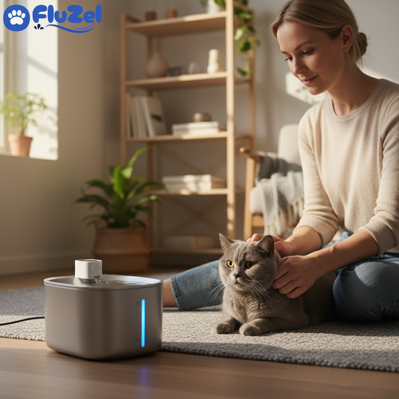 FluZel katte vandfontæne løser problemet ved kilden. Vores avancerede system holder vandet friskt, iltet og helt fri for biofilm, hvilket aktiverer din kats "sikkert at drikke"-instinkt. Resultatet? Din kat drikker mere og holder sig sundere.
