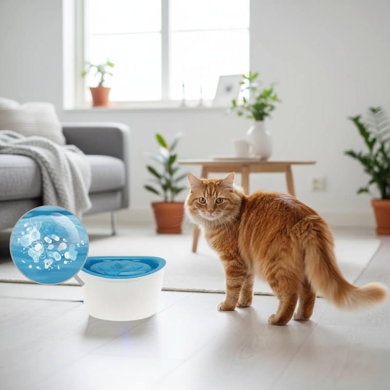 Hold din kat sund og glad med frisk, iltet vand – helt uden bakterier eller besvær.
