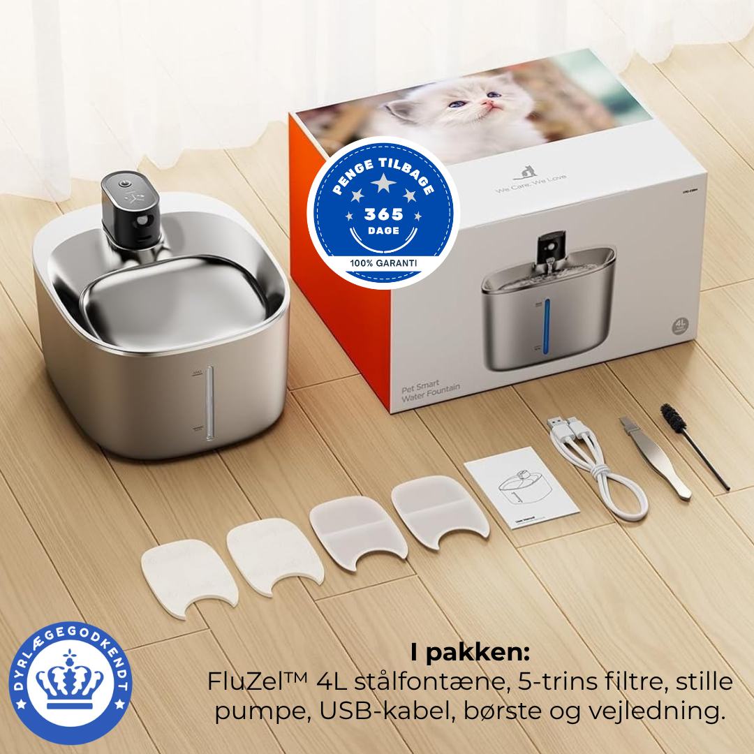 • 1x 4L FluZel drikkefontæne i rustfrit stål
